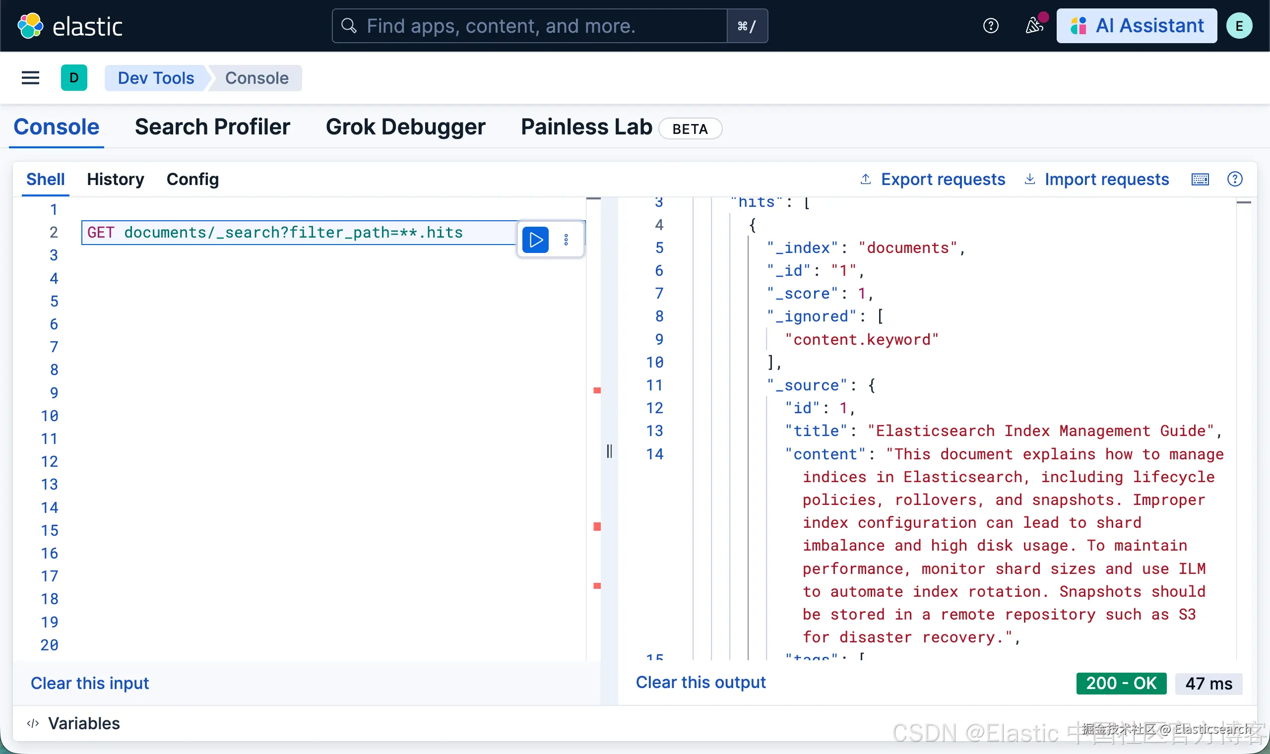 目前,它只支持 ES|QL,Index search,Workflow 及 MCP。当针对我们的 Elasticsearch 里的索引进行 DSL 查询时,我们感觉到无能为力,毕竟 DSL 是很多开发者心里最熟悉的查询语言,虽然 ES|QL 是我们最终的目标。那么我们该如何做呢?