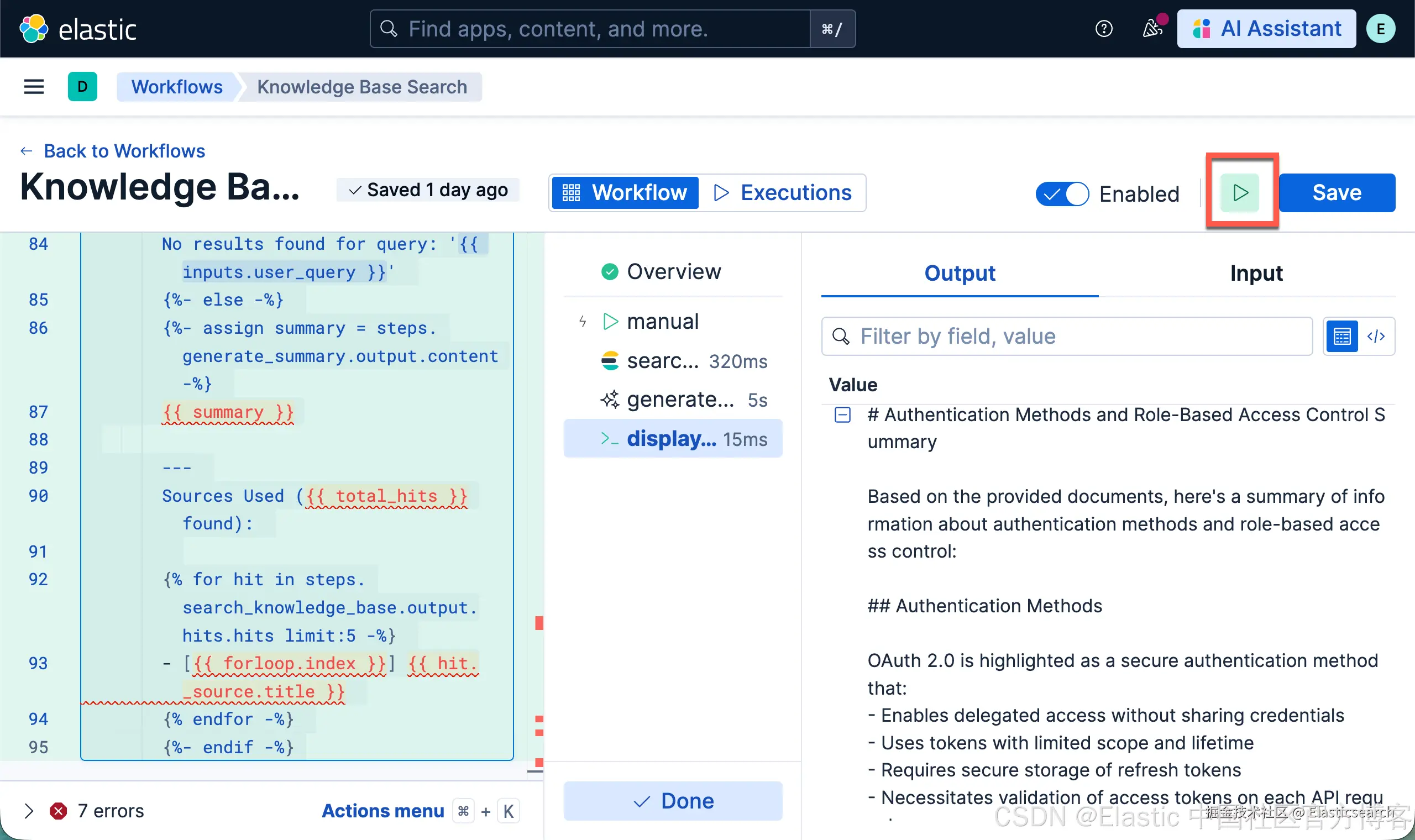 在最近的一篇文章 “使用 TypeScript 创建 Elasticsearch MCP 服务器”,它使用了 MCP 来完成这个 DSL 的查询。当然一个 MCP 的设计不是那么容易的,而且还需要语言设计。在下面,我们使用 Elastic Workflow 来实现同样的功能。
