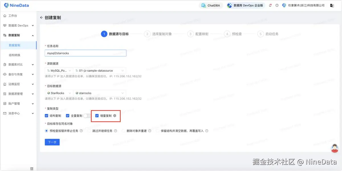 NineData 创建 MySQL -> StarRocks 同步任务实操