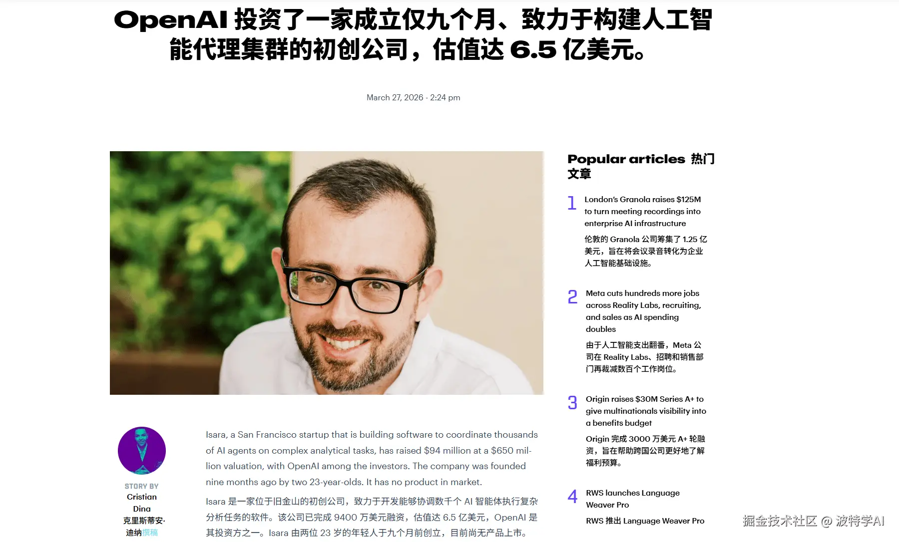 OpenAI 投了一家叫 Isara 的公司,估值 6.5 亿美元。
