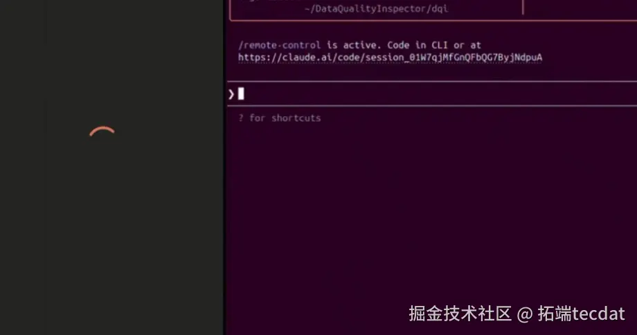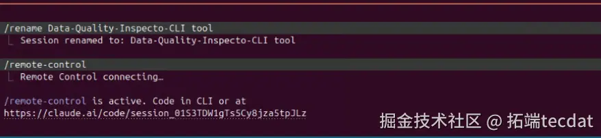 启动 Remote Control 后,终端会显示一个会话 URL,复制并在浏览器中打开即可访问: