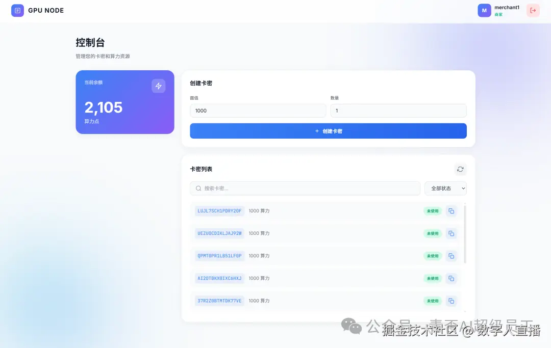 管理端:通过统一采购云端算力或部署本地算力后分配给下游,可以赚取稳定的算力差价。同步掌握商家使用数据,为增值服务与深度运营提供支撑。