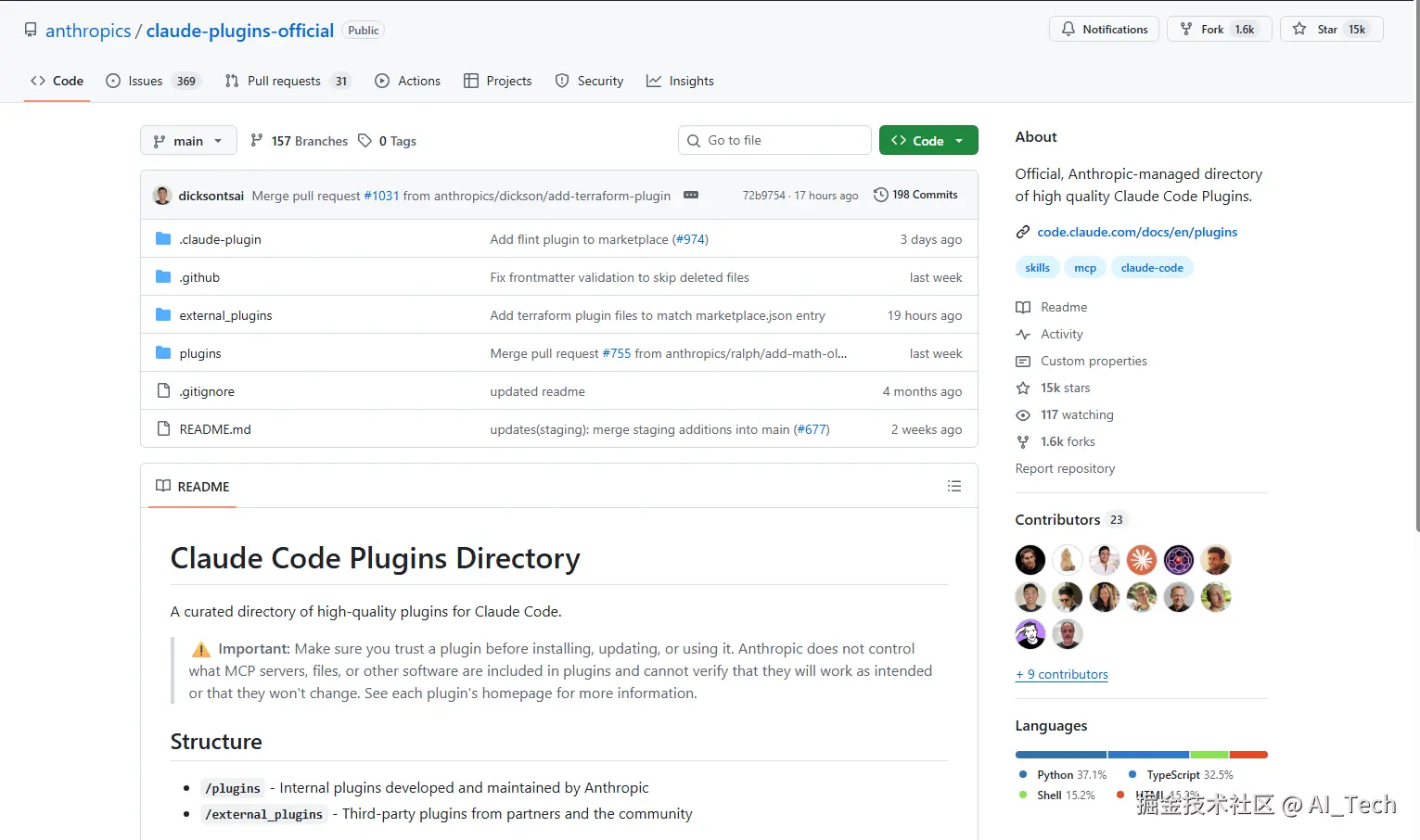 这个GitHub仓库是Claude Code的高质量插件目录,为Claude Code用户提供了丰富的插件资源。以下是该仓库的详细介绍: