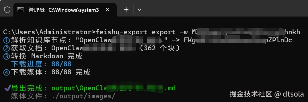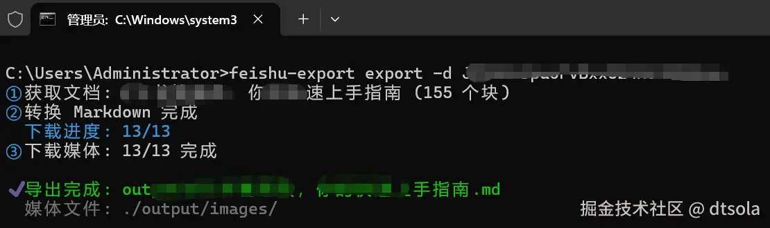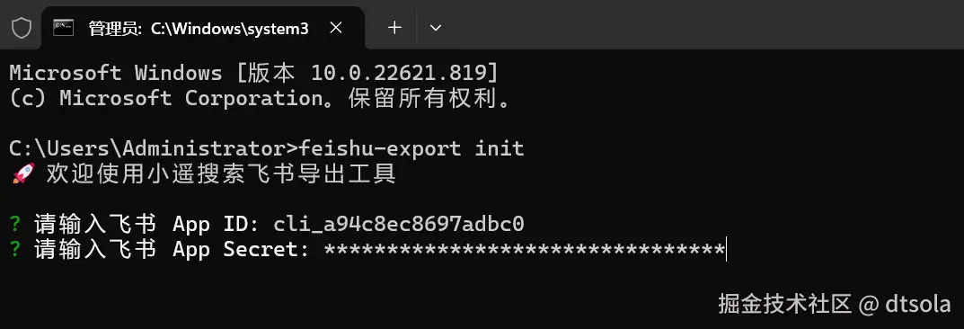feishu-export init初始化配置 - 执行导出命令