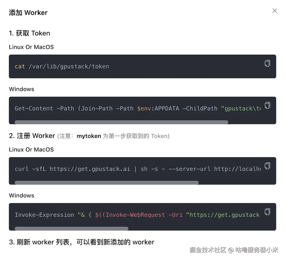 也可以直接按照 GPUStack 上的指引添加 Worker: