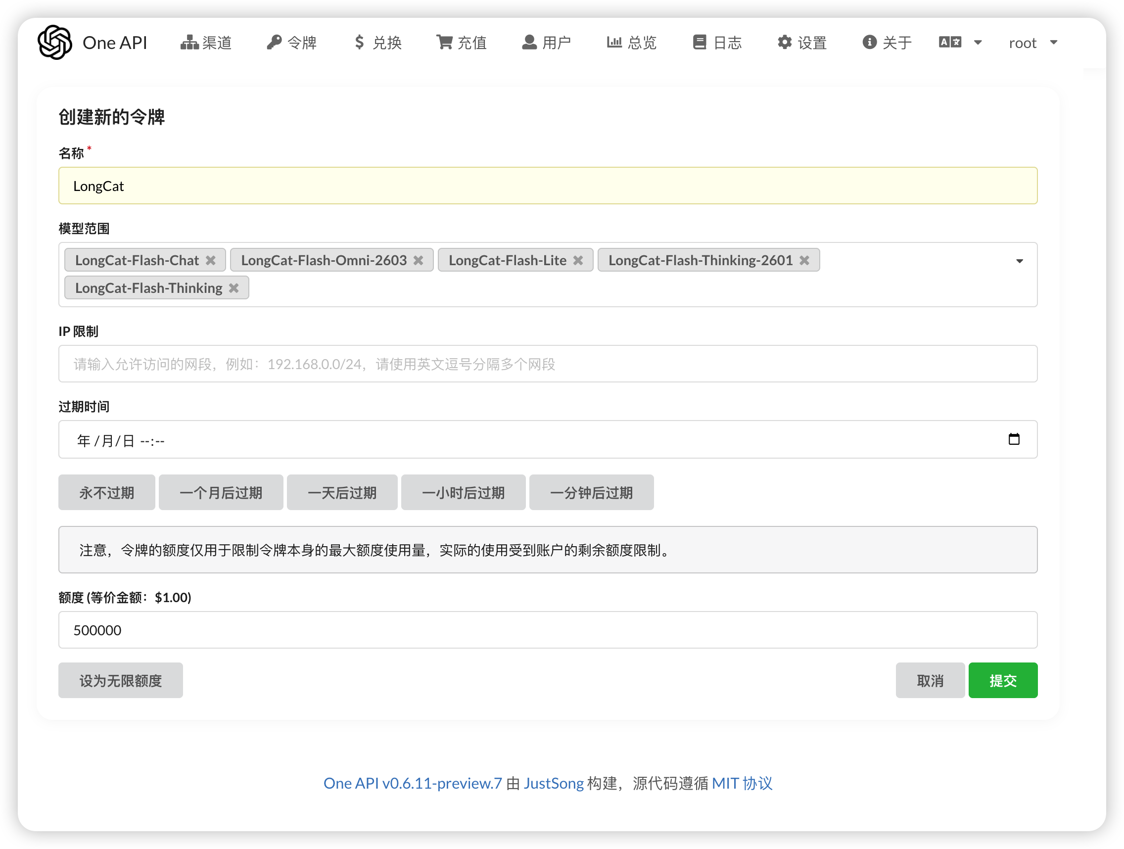 我之前推荐过几次的 LongCat 这个模型虽然量大管饱,但并非所有应用都能直接兼容。例如在 n8n 的 AI Agent 节点或之前的《Wolfcha 狼人杀》项目中,直接调用 LongCat 常会遇到适配报错。通过 One API 中转后,所有模型都能化身为标准的 OpenAI 接口,从此告赖,一路绿灯。