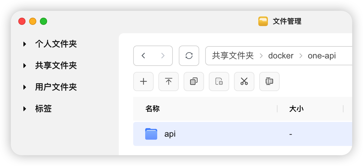 打开「文件管理」,在 docker 文件夹下新建 one-api 文件夹。
