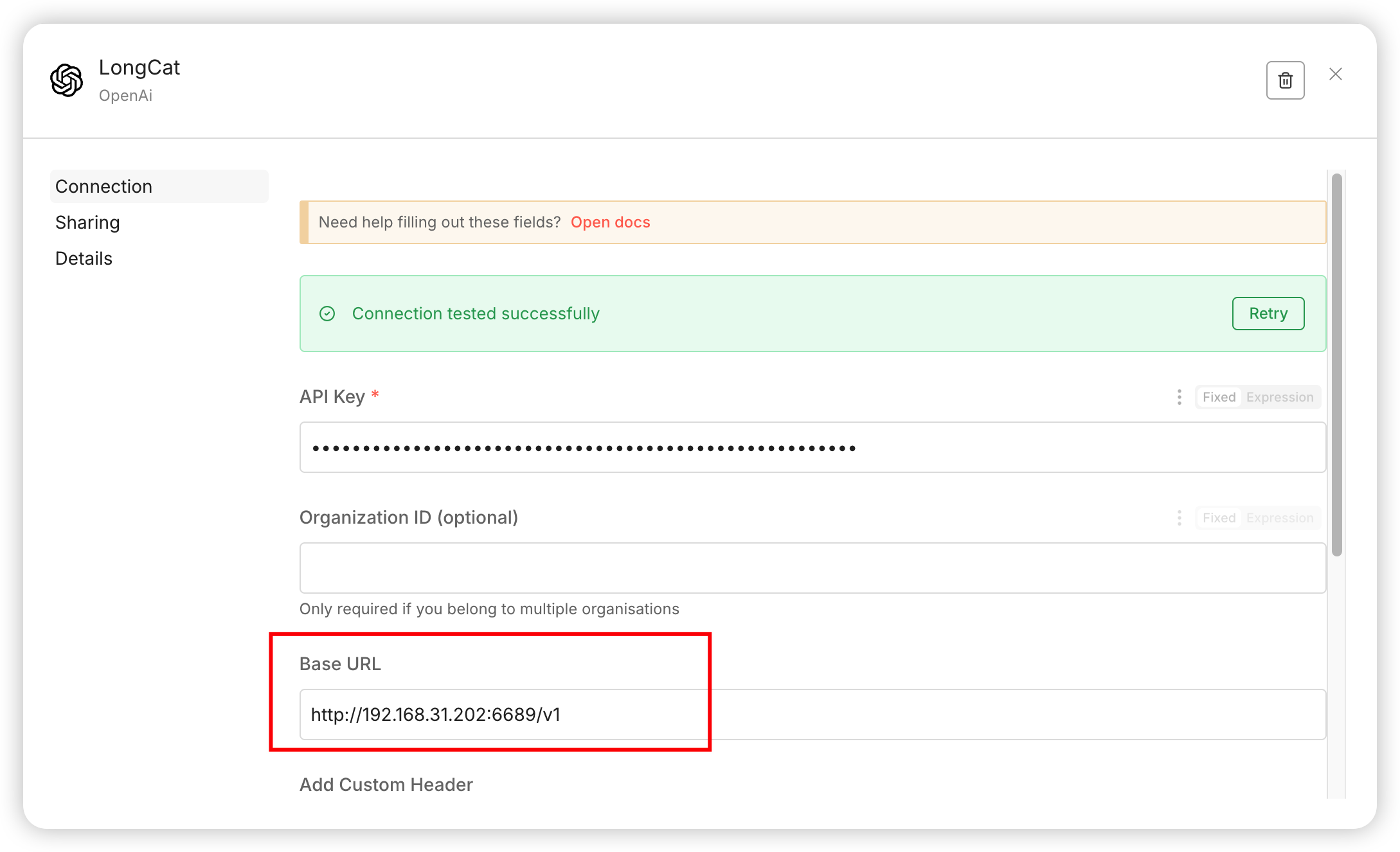 https://api.longcat.chat/openai/v1 - 模型: 在下方输入框填入: