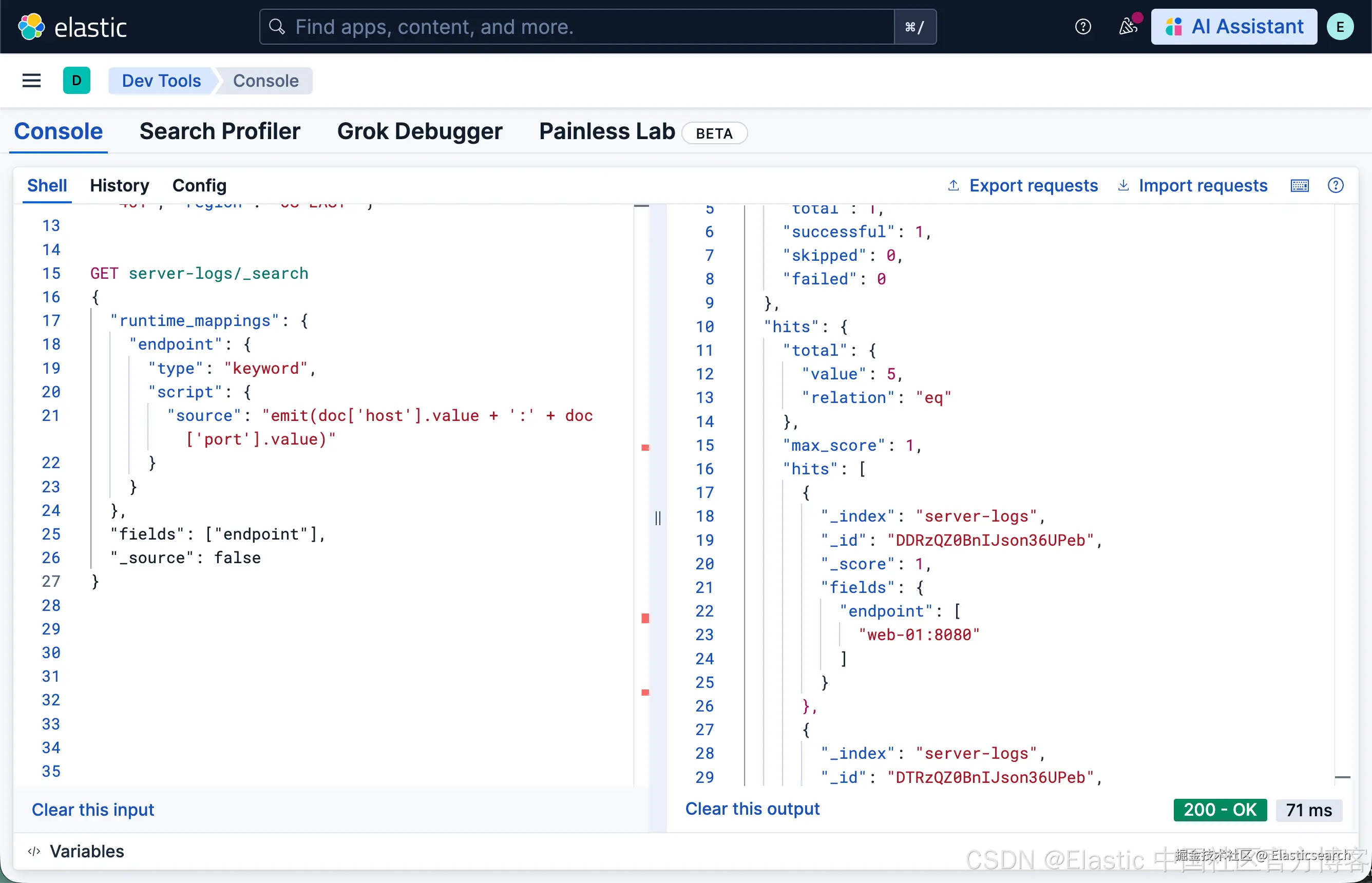 - Painless 脚本开销:每个 runtime field 都需要脚本知识,而且语法类似 Java,而不是查询式语法。