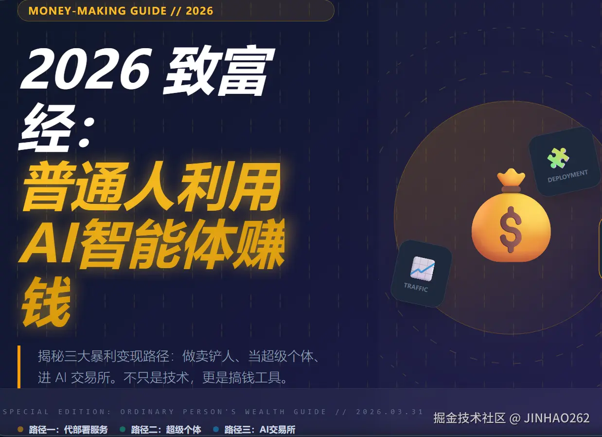 导读: 当大多数人还在感叹 AI 可能会取代工作时,一批敏锐的普通人已经悄悄利用 AI 智能体(AI Agent) 实现了财富跃迁。从武汉周入 10 万的“养龙虾”教练,到郑州一人运营 7 个大号的自媒体操盘手,AI 智能体不再是高深莫测的技术名词,而是触手可及的“搞钱工具”。本文将为你深度拆解:作为一个普通人,如何在这波技术浪潮中精准卡位,通过 AI 智能体赚到你的第一桶金。