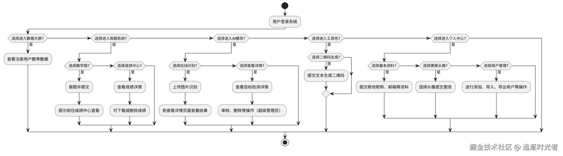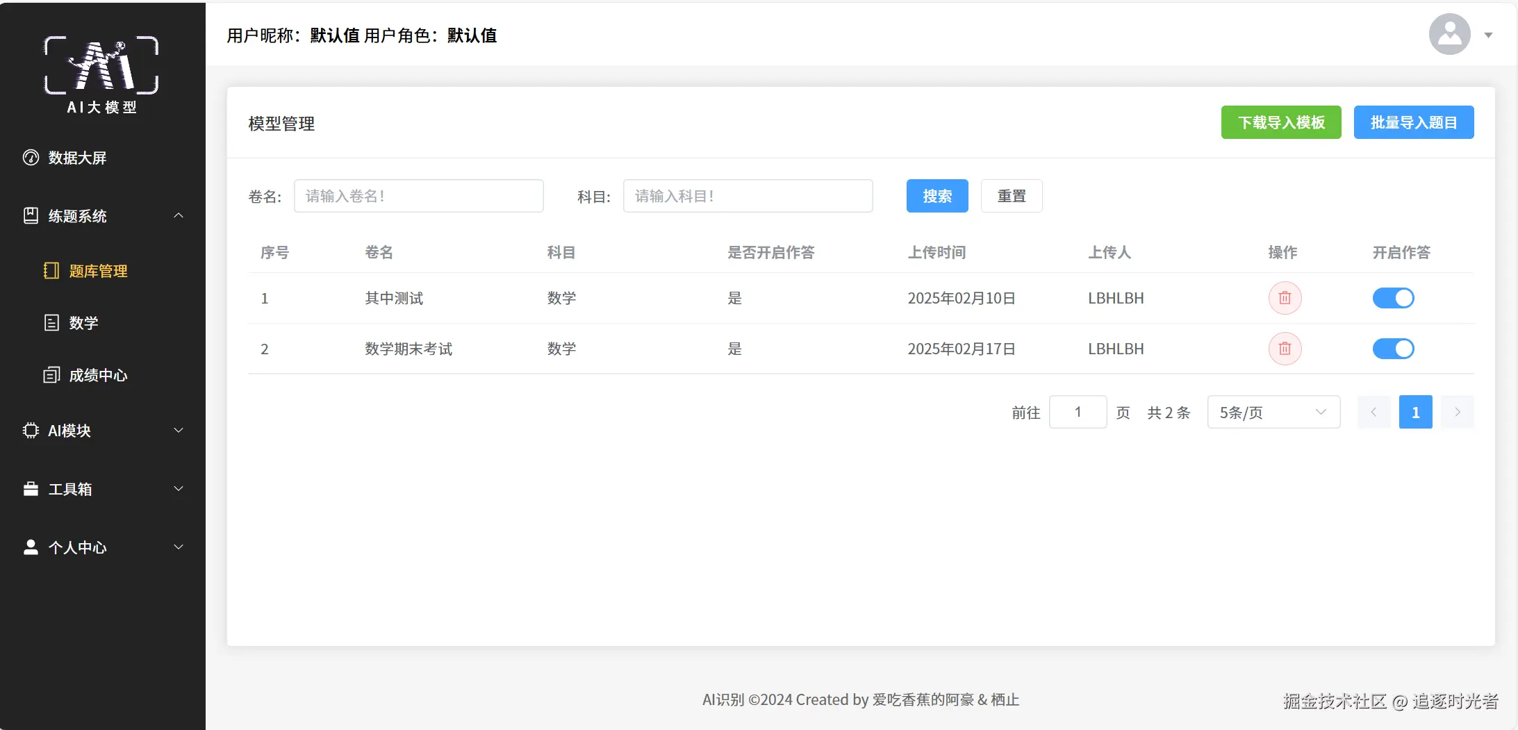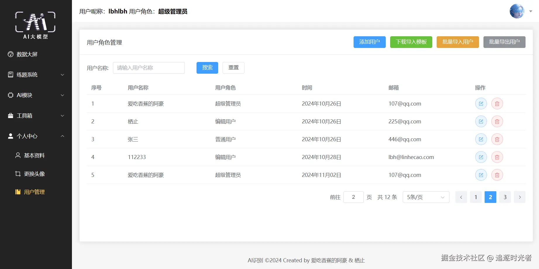 登录注册、数据大屏、题库系统、AI模块、工具箱、个人中心等。