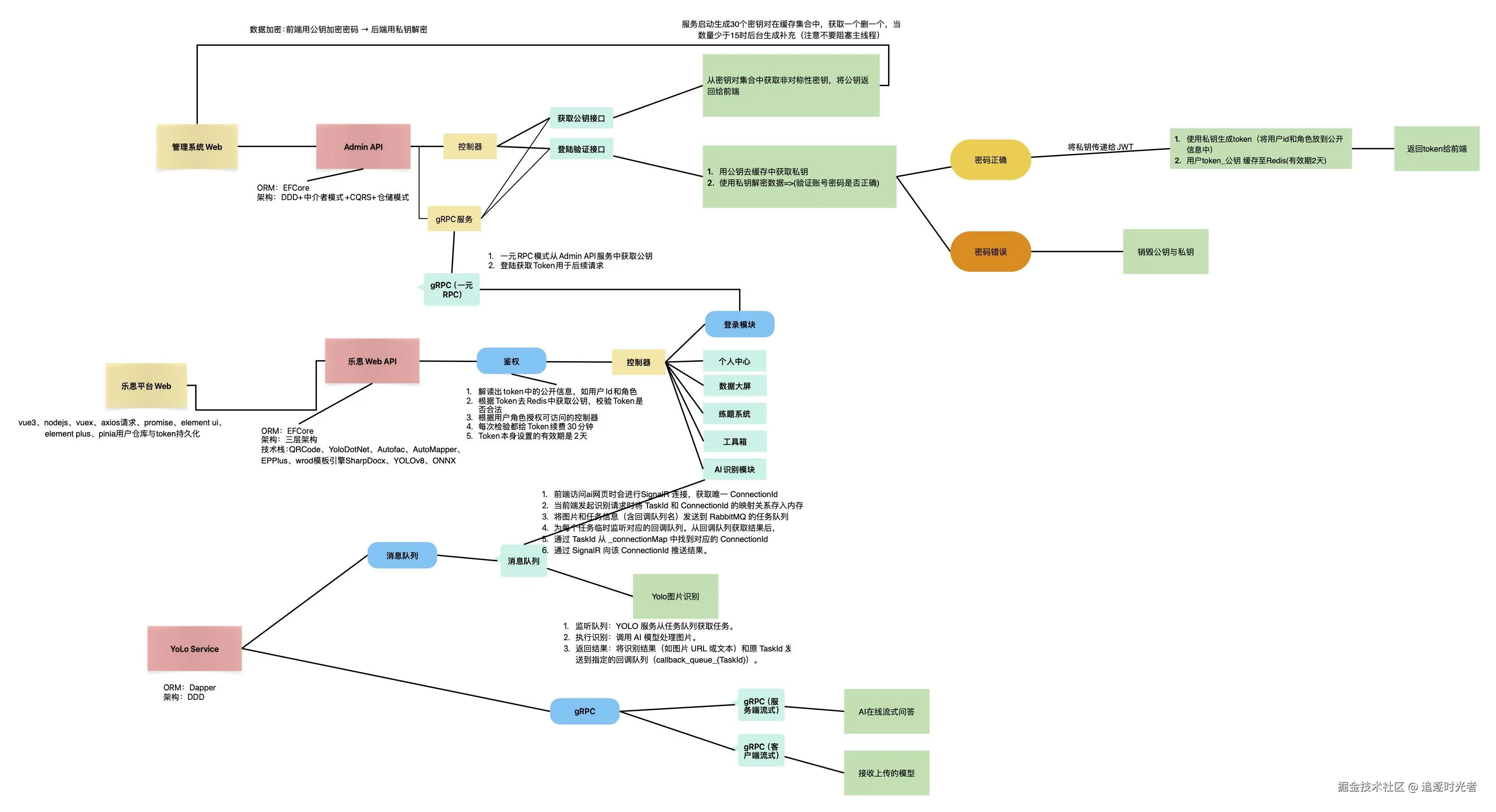 - Admin Server(管理后台核心) :.NET 8、DDD、中介者模式、CQRS、EFCore仓储、动态密钥、gRPC。