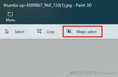 用 Paint 3D 打开照片,然后点击“魔法选择”。