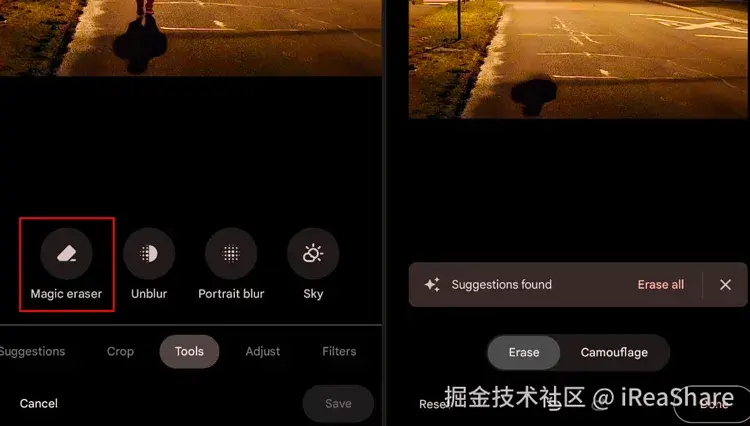 前往“工具”并选择“魔力橡皮擦”。谷歌会自动建议要擦除的内容(它们会发光)。点击“全部擦除”或点击单个项目。