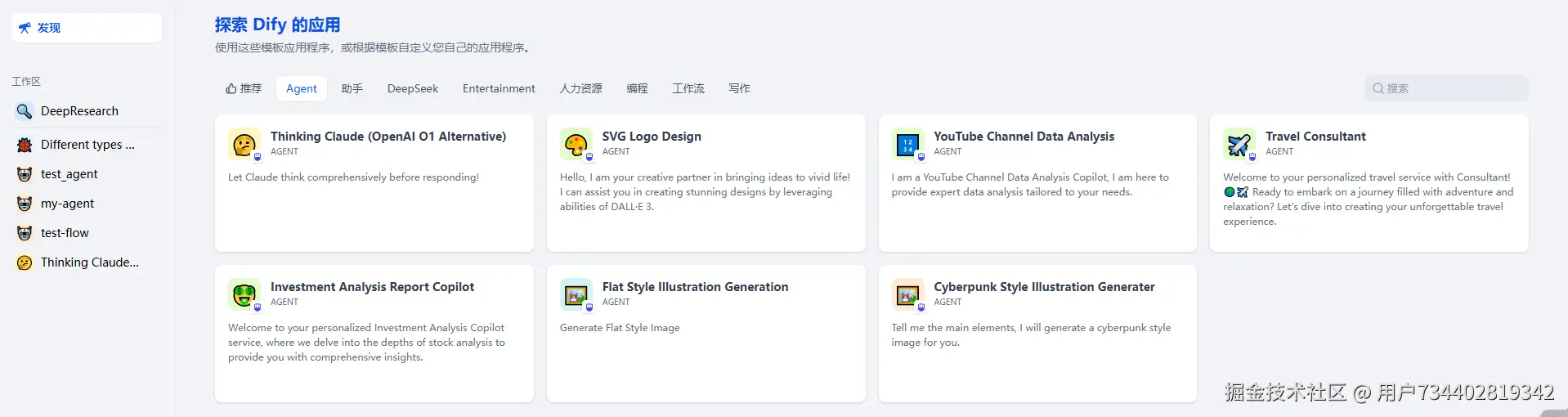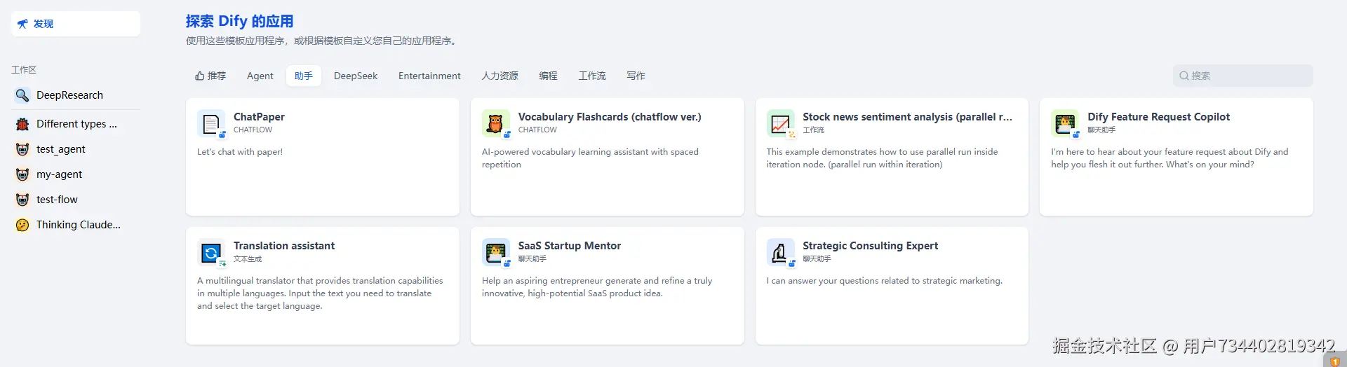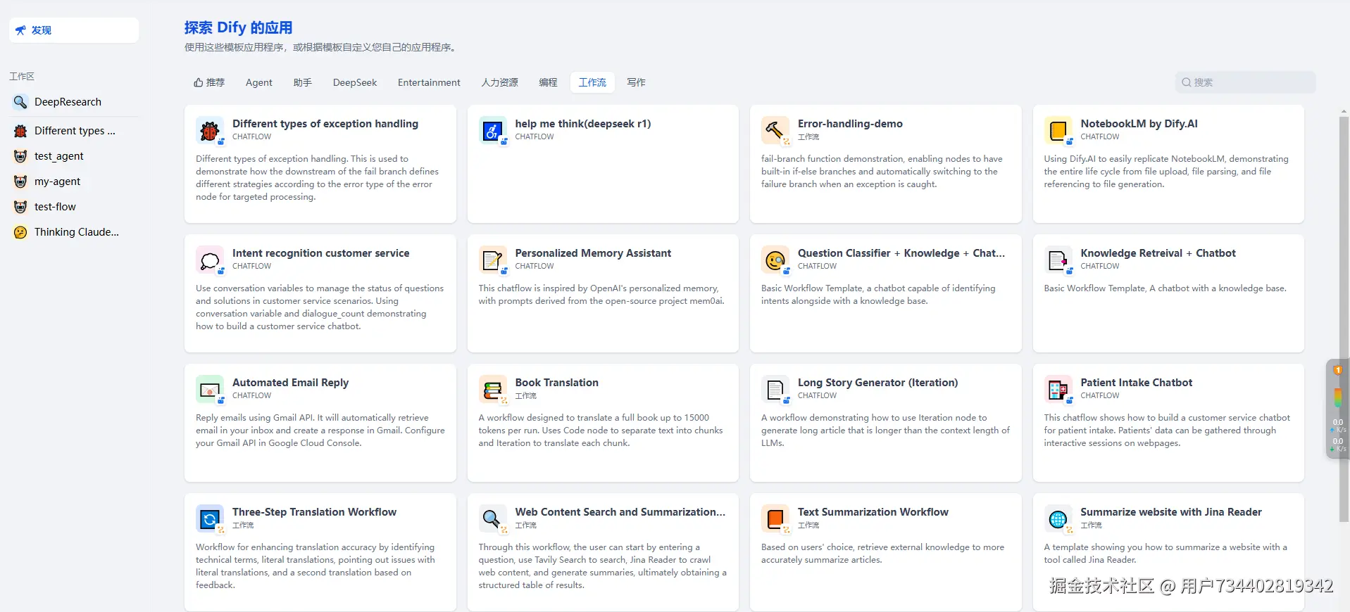 工作流 / Agent / 聊天助手 : 同理