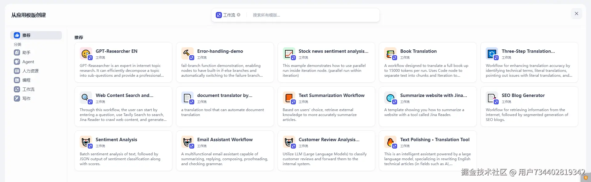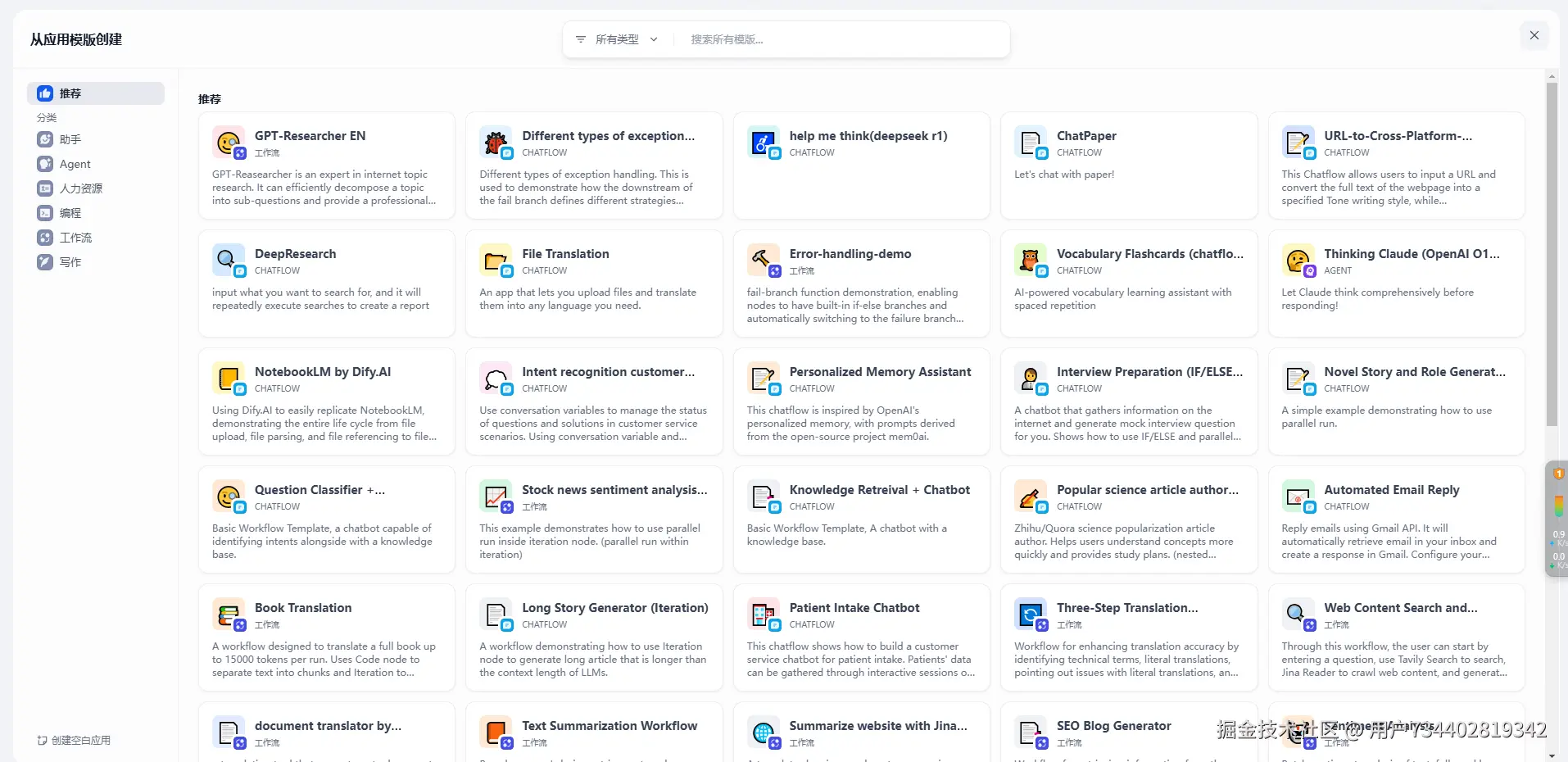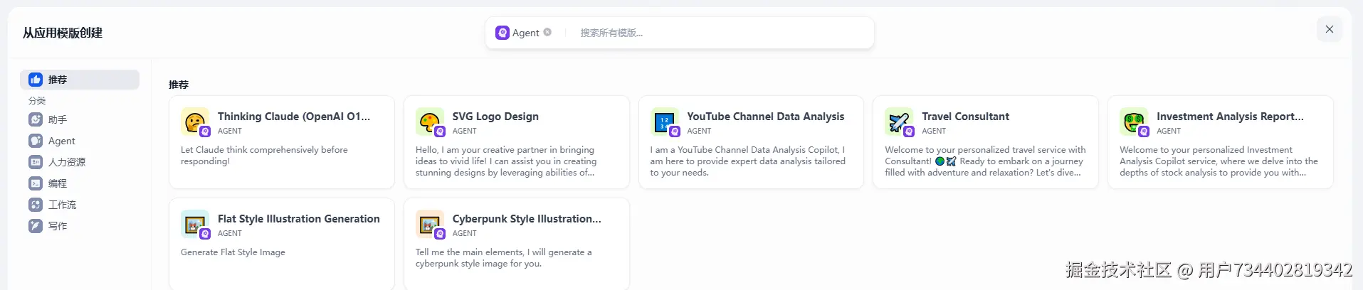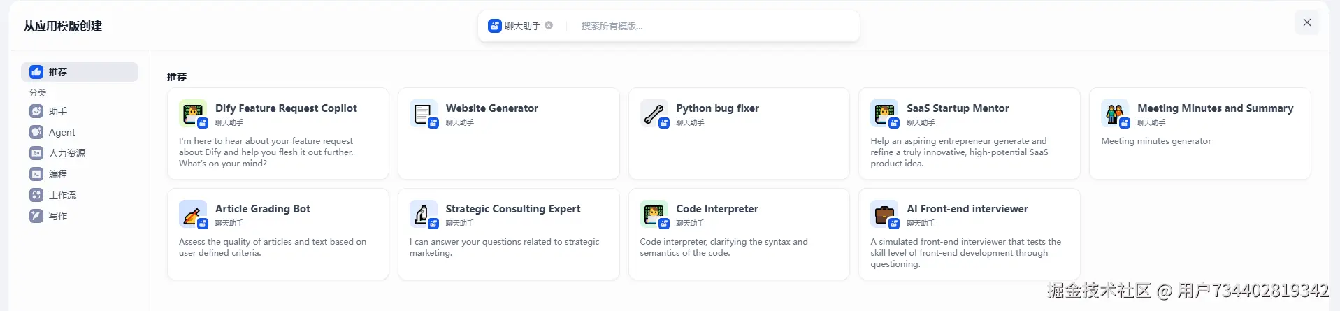 工作流 / Agent / 聊天助手 : 同理
