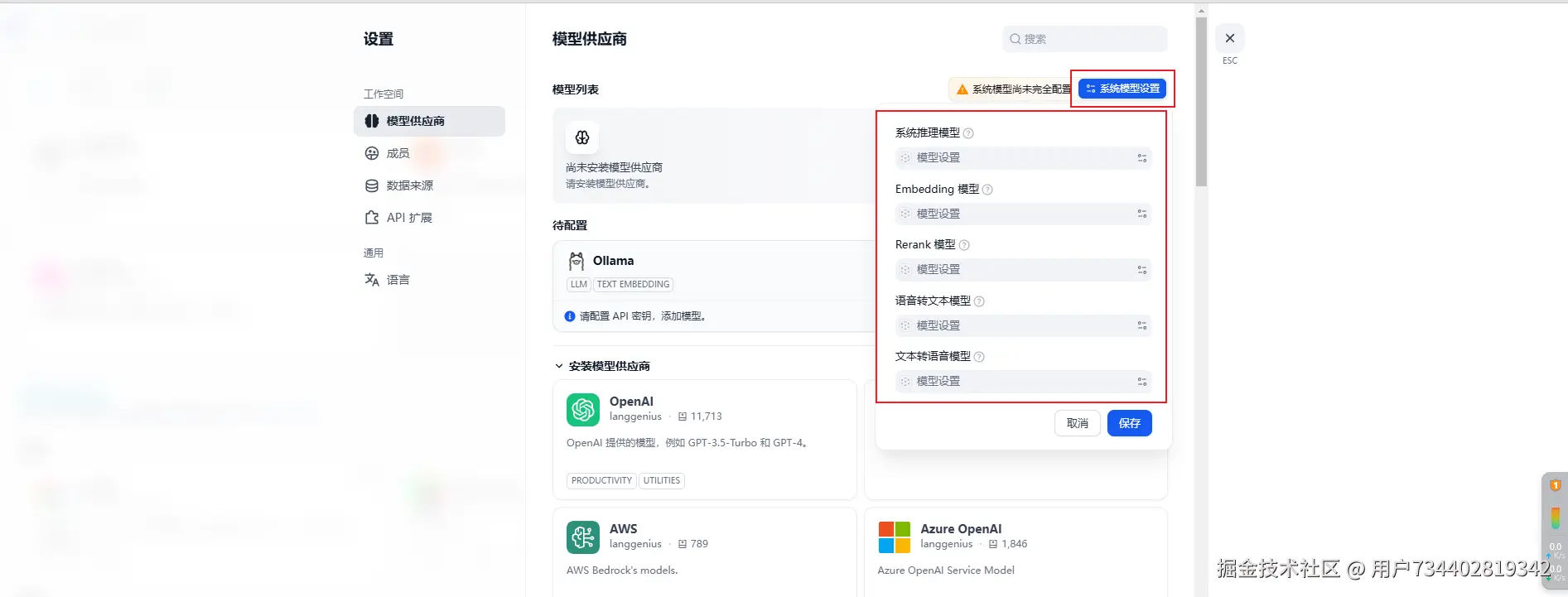 此时,即可为【系统模型设置】一一设置所需的模型