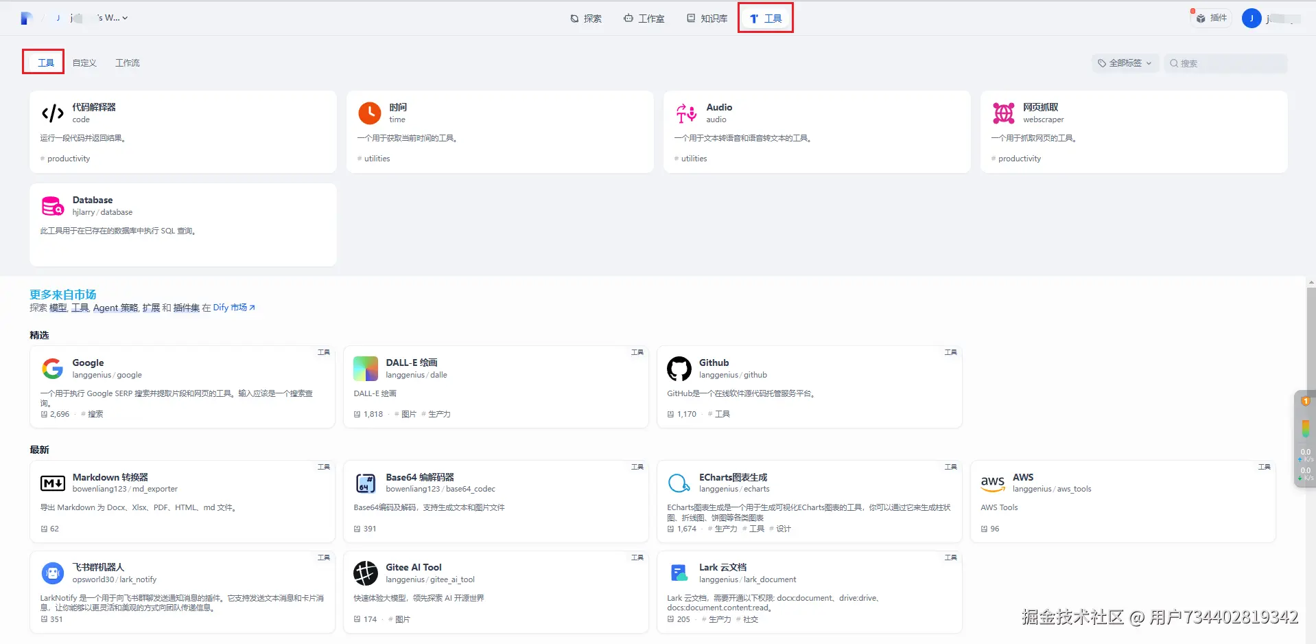 - 代理功能:Dify 内置了 50 多个工具 ,例如 Google Search、DELL·E、Stable Diffusion 和 WolframAlpha,也可以自定义工具。可以基于LLM函数调用或ReAct定义代理,并为代理添加预构建或自定义工具