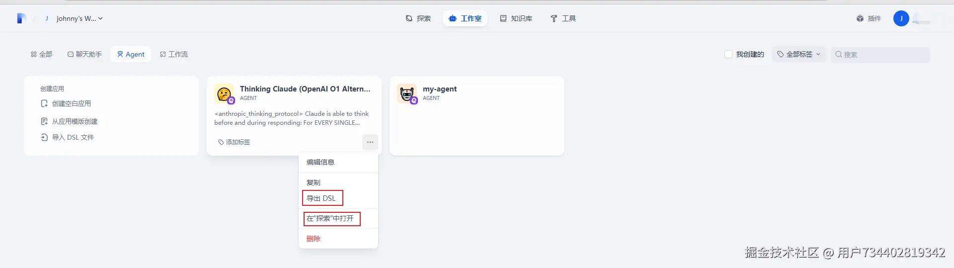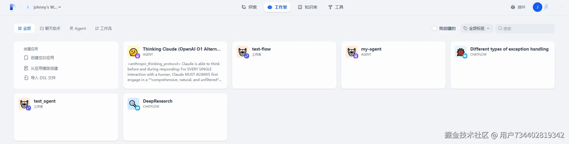 工作室 : 聊天助手(CHATFLOW) / Agent / 工作流
