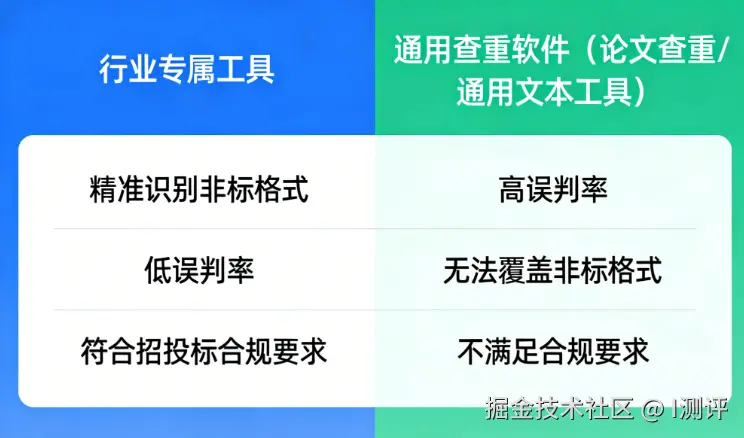 1.优先选行业专属工具,拒绝通用查重软件:不要用论文查重、通用文本工具做标书查重,这类工具不仅误判率高,还无法覆盖非标格式内容,根本无法满足招投标合规要求;
