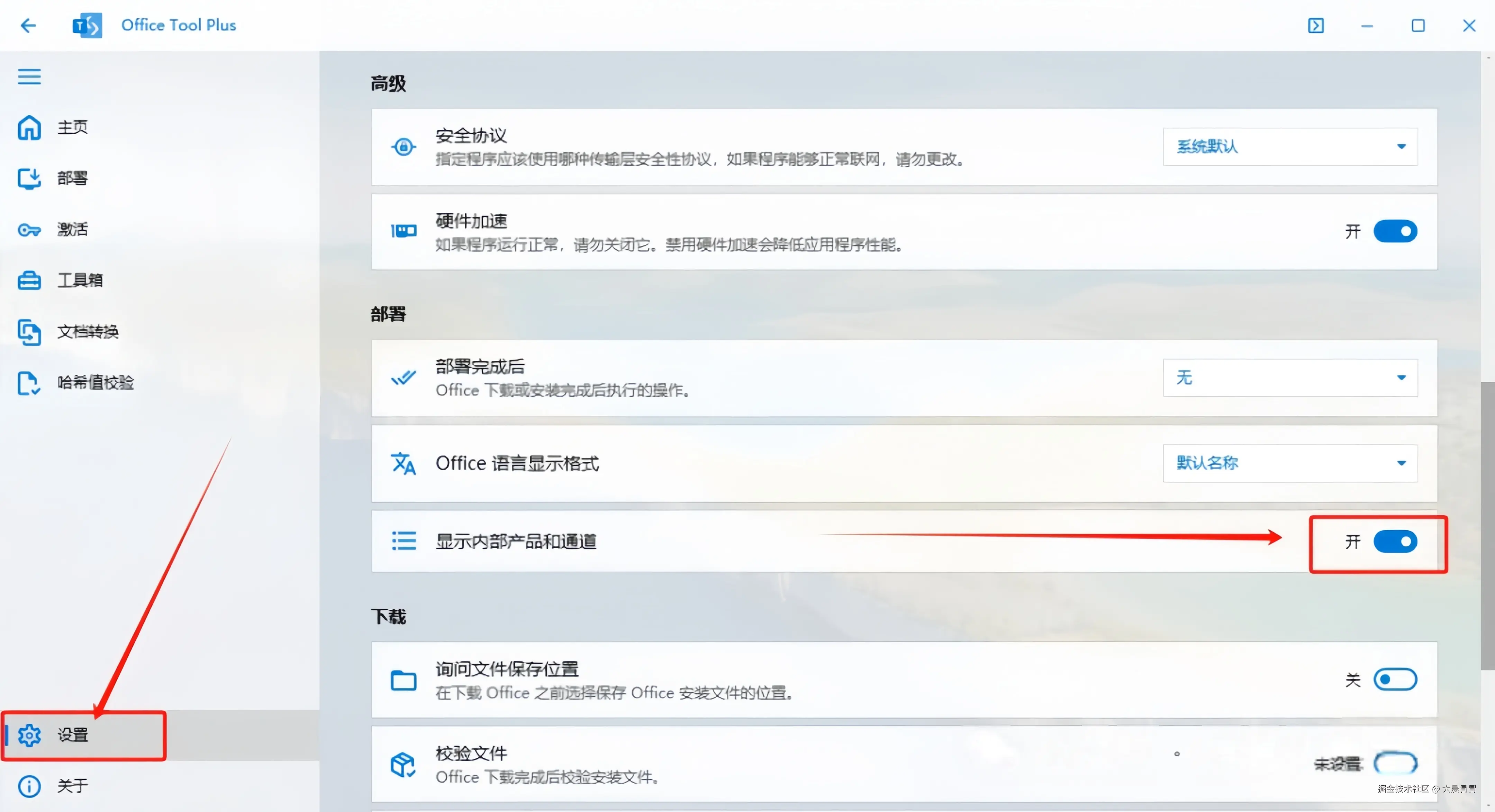 7.左下方点击【设置】,【显示内部产品和通道】选择开启。