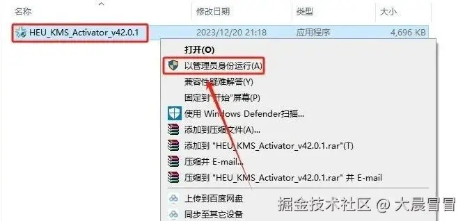 17.鼠标右击【HEU_KMS_Activator_42.0.1】选择【以管理员身份运行】。