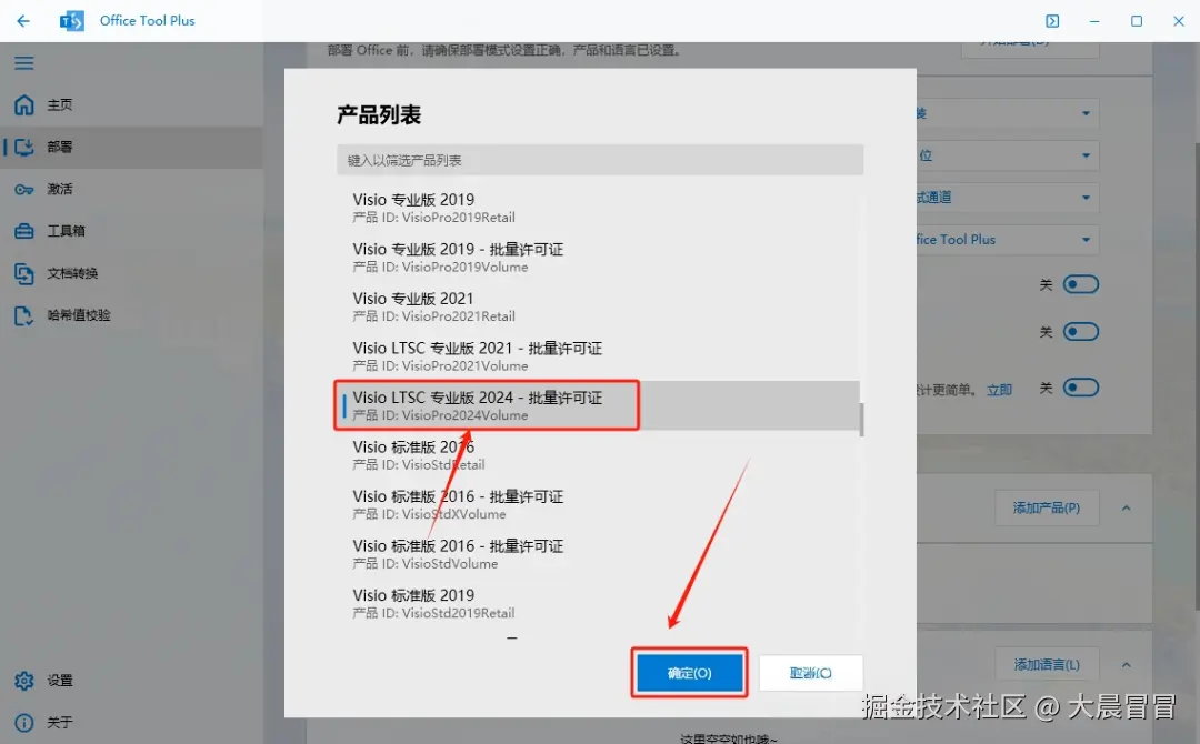 11.下拉中找到【Visio 专业版 2024】点击【确定】。
