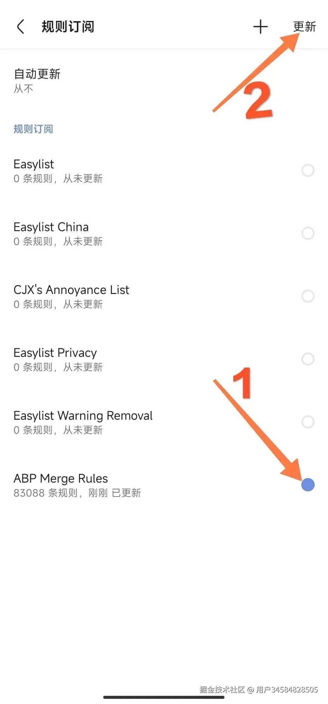 导入后需要更新,开启规则,然后点“更新”。更新完成以后,我们再去浏览网站,就变得非常干净简洁了。