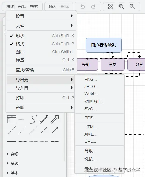 可以直接把流程图导出为GIF图或者其它的格式。