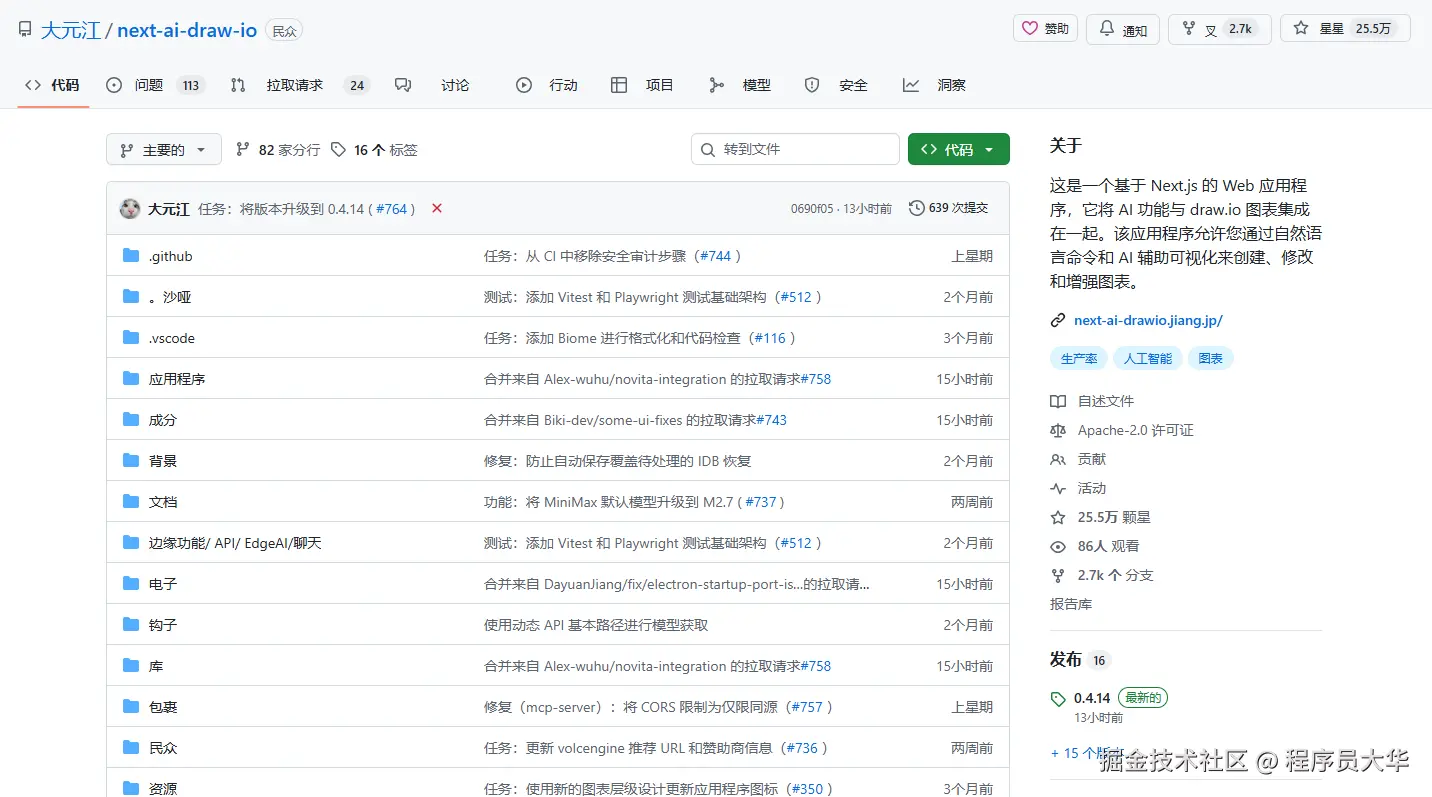 今天给大家介绍一个最近在 GitHub 上非常火的项目:next-ai-draw-io