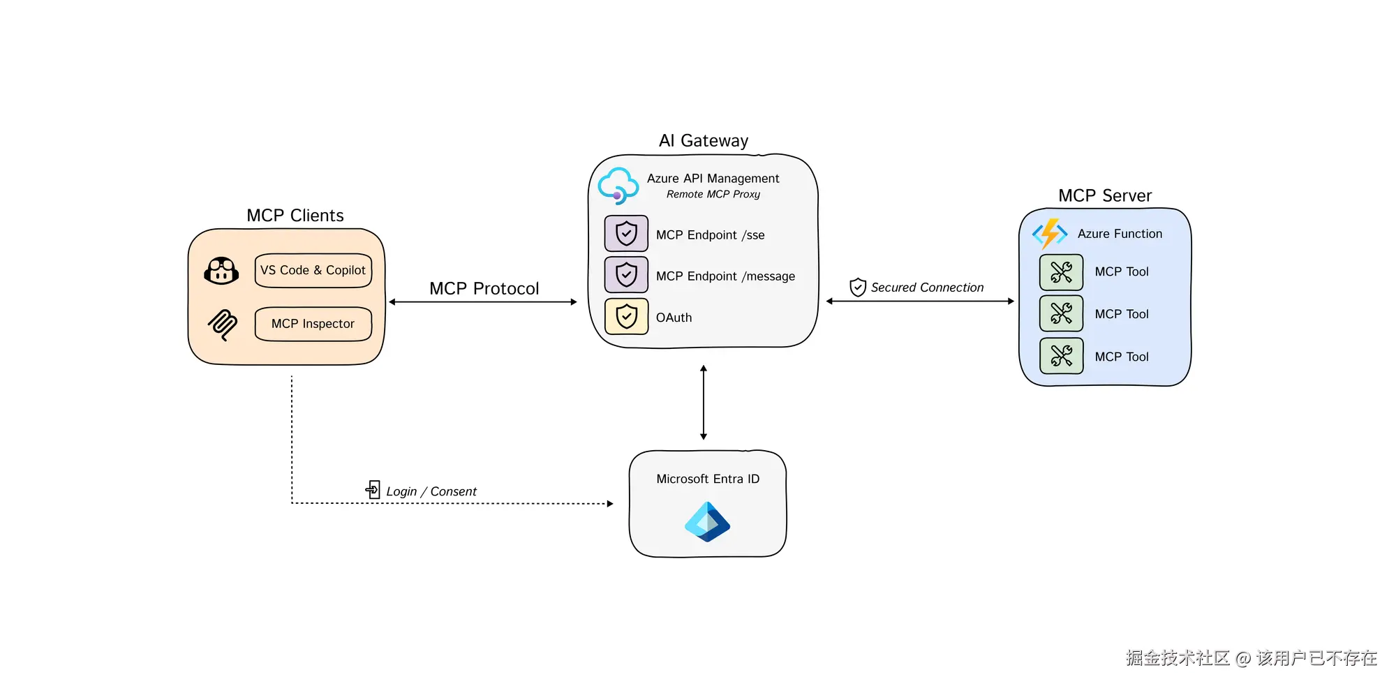 它利用Azure API Management作为网关,处理了最让人头疼的OAuth认证和权限管理,后端则是无服务器的Azure Functions。如果你在公司内部推MCP落地,需要过安全合规这一关,直接甩这个方案给架构师,能省去你无数的口舌。