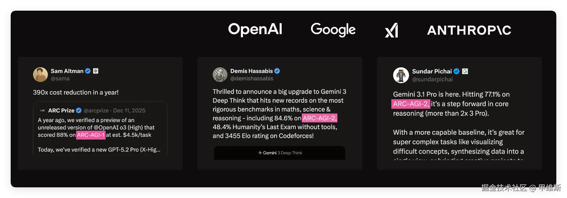 | ARC-AGI-2 | 复杂组合谜题 | ~77% | ~100% | |