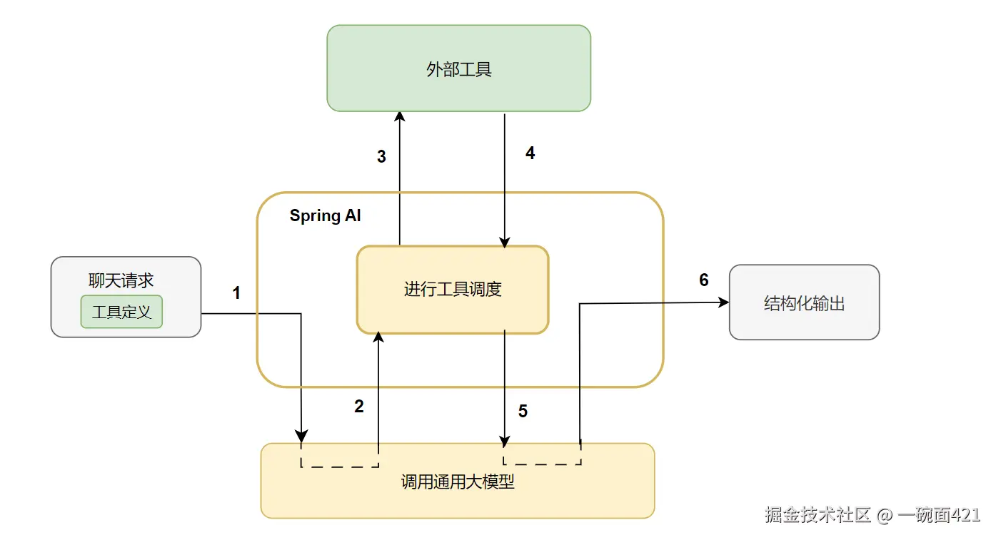 之前的文章中已经说过了工具调用的工作远程,我们这里回顾一下。