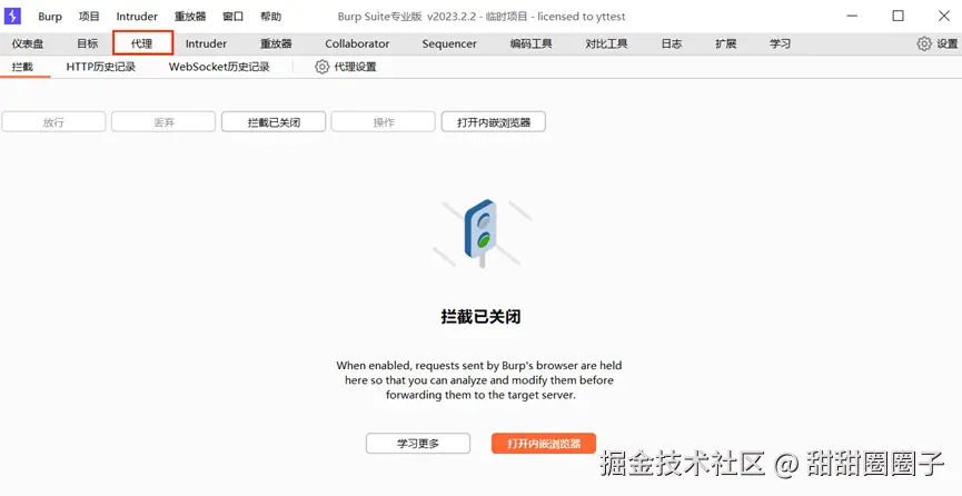 内嵌的浏览器:测试时可使用burp suite内嵌的浏览器访问web系统,无需在设置代理和安装证书, http历史记录中就会拦截所有请求,方便测试使用。