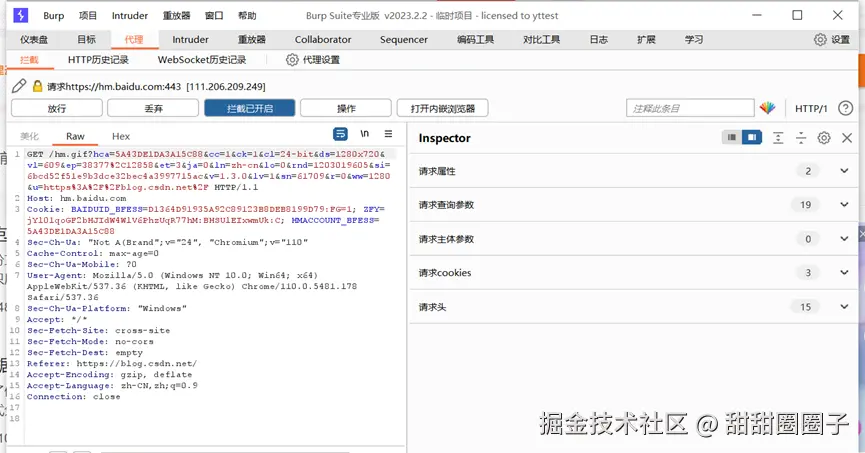 Burp suite设置代理后,可以拦截请求,可以根据需要进行数据查看、修改、拦截等操作。