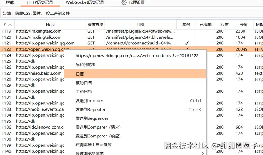 单接口扫描使用方法:在抓包中选择一条或多条请求,右键点击扫描发送到Scanner,可进行单个请求的扫描;