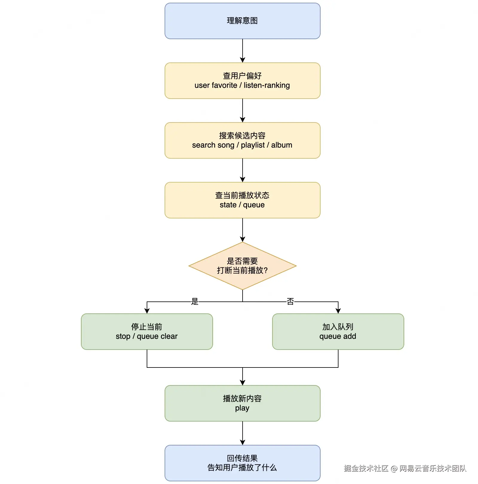 AI 处理一个请求,本质上是一个多步推理 + 执行的过程。以「帮我播放一首适合现在心情的歌」为例,AI 需要能做这些事: