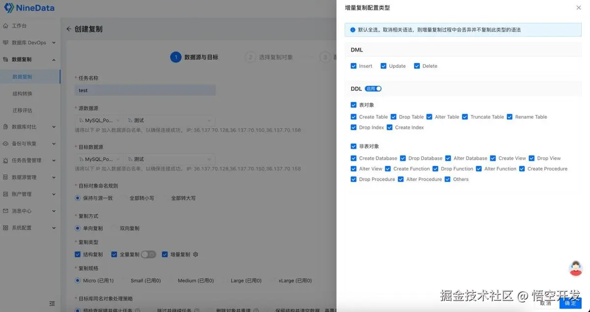 NineData 覆盖了这类生产问题里较为常见的几项:图形化配置、结构复制、全量和增量复制、任务监控、复制限流、告警、数据对比以及后续调整同步对象等。对很多团队来说,这些能力组合在一起的意义,往往比单独强调某一项性能指标更实际。