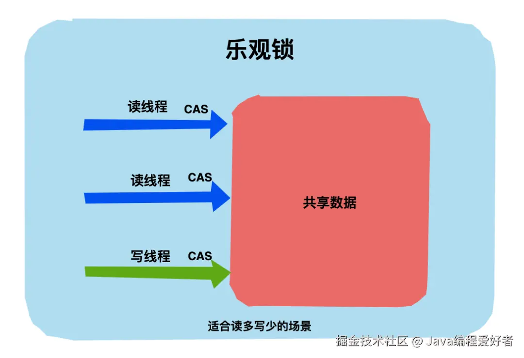 乐观锁适用于写比较少(冲突比较小)的场景,因为不用上锁、释放锁,省去了锁的开销,从而提升了吞吐量。