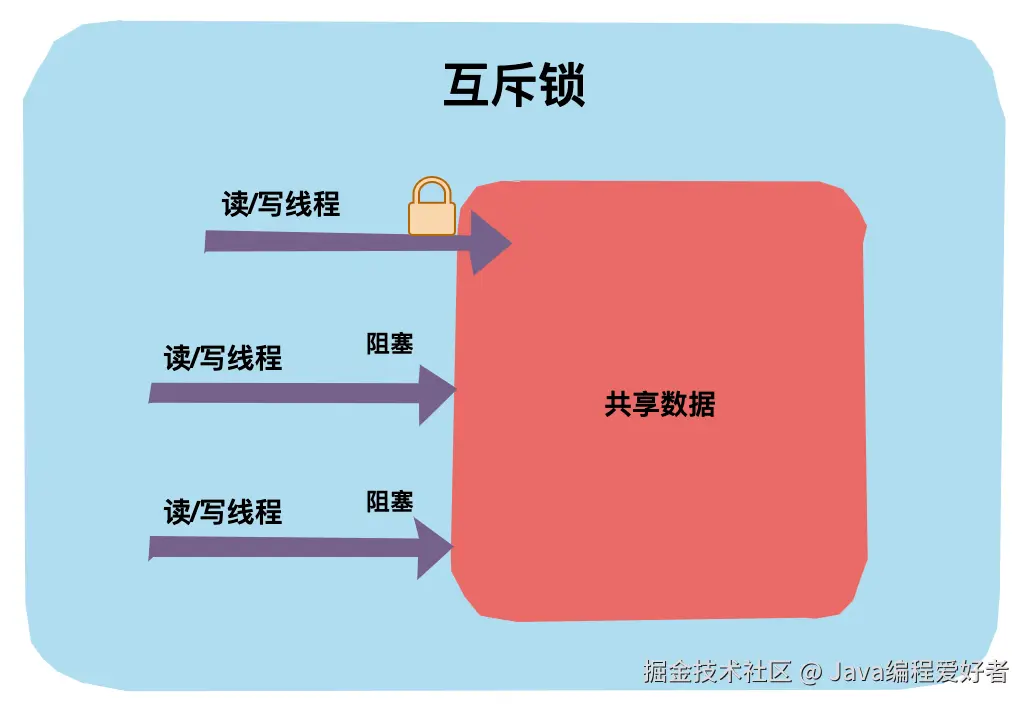 互斥锁是独占锁的一种常规实现,是指某一资源同时只允许一个访问者对其进行访问,具有唯一性和排它性。