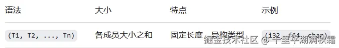 复合类型(compound type)可以将多个不同类型的值组合为一个类型。Rust提供了两种内置的基础复合类型:元组(tuple)和数组(array)。