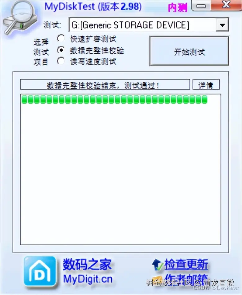 测试过程:软件对存储设备进行了全面的读写测试,以校验数据的完整性。