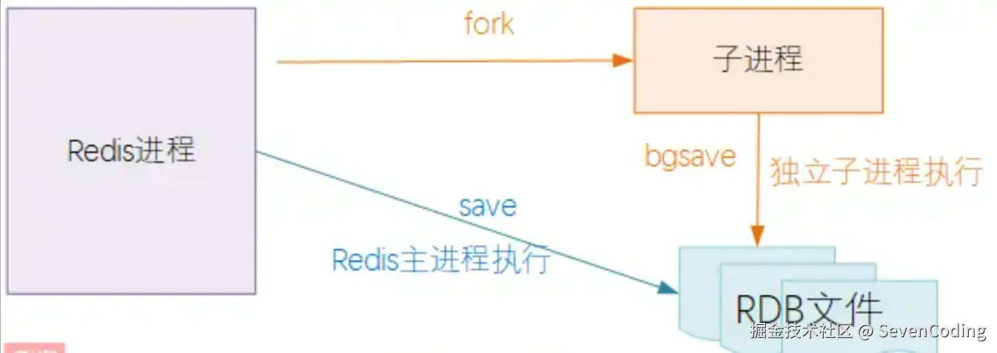 RDB全量模式持久化将数据写入磁盘的动作可以分为SAVE与BGSAVE两种。所谓BGSAVE就是background-save,也就是后台异步save,区别点在于SAVE是由Redis的命令执行线程按照普通命令的方式去执行操作,而BGSAVE是通过fork出一个新的进程,在新的独立进程里面去执行save操作。