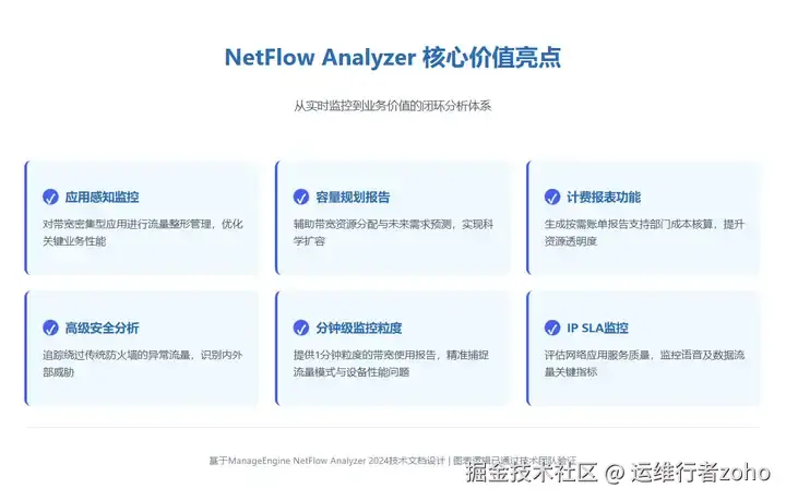 NetFlow Analyzer 是一款专业的网络流量管理方案,通过采集、可视化分析和报告网络带宽使用情况及用户行为,帮助企业全面掌控网络状态。该工具基于流技术(Flow Technology)实现数据采集,可深度解析流量行为、安全事件及带宽管理,赋能管理员优化网络效率。