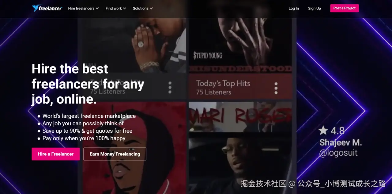 Freelancer 是经典的国际外包平台,项目涵盖 Web 开发、移动应用、AI、数据分析等多个领域。