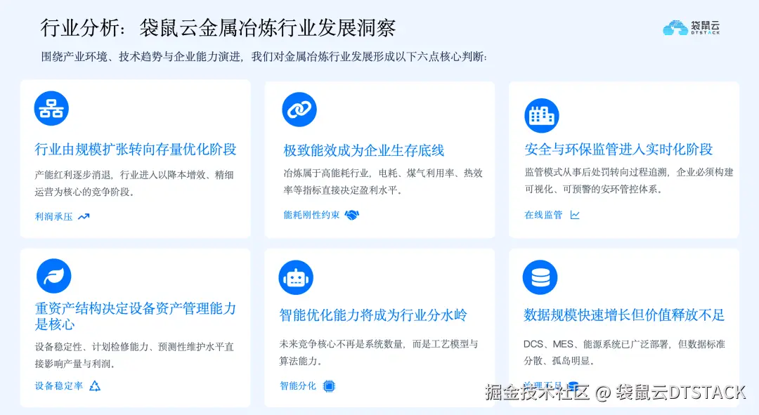 基于对冶炼行业交付项目的分析,从产业环境、技术趋势和企业能力演进三个角度,可得出对当前行业发展的六大核心判断,明确了行业发展的核心方向。