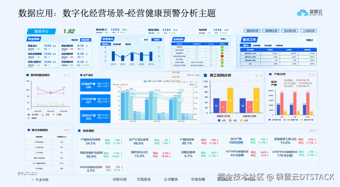 通过构建经营健康分析主题,整合分散在各系统的经营数据,形成企业整体健康评分(基于营业收入、毛利率、库存周转率等关键指标),实时监控企业经营状况。同时,构建统一的数据治理体系,统一指标口径和数据来源,确保经营数据可追溯、可解释,让管理层在统一视图中快速掌握经营状态,及时识别经营风险。