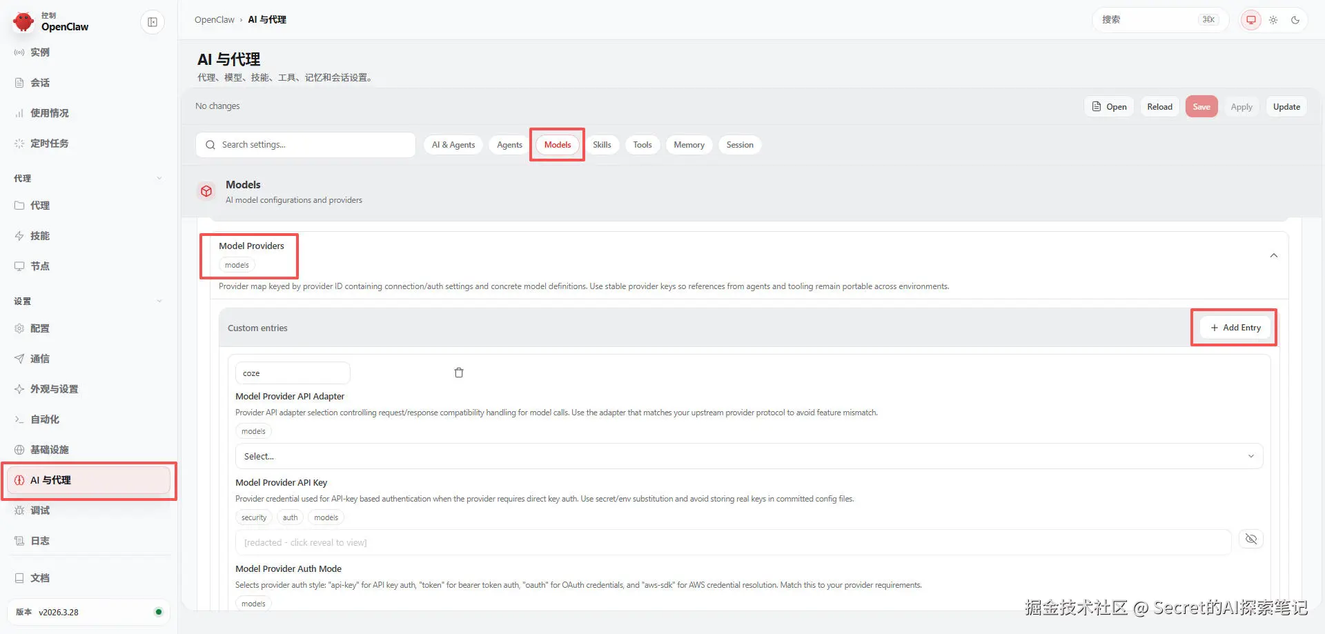 - + Add Entry(添加条目)- 添加新模型提供商按钮