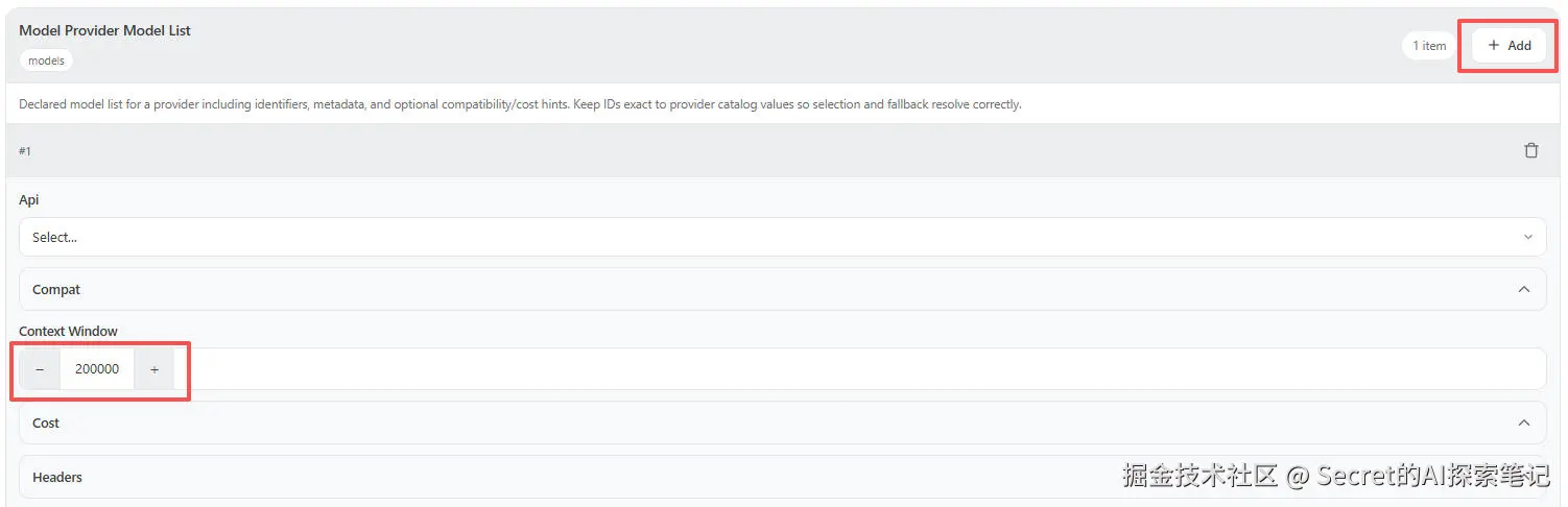 3. 配置 Context Window(上下文窗口)- 设置模型的上下文长度(token 数,可留空,系统自动补全)