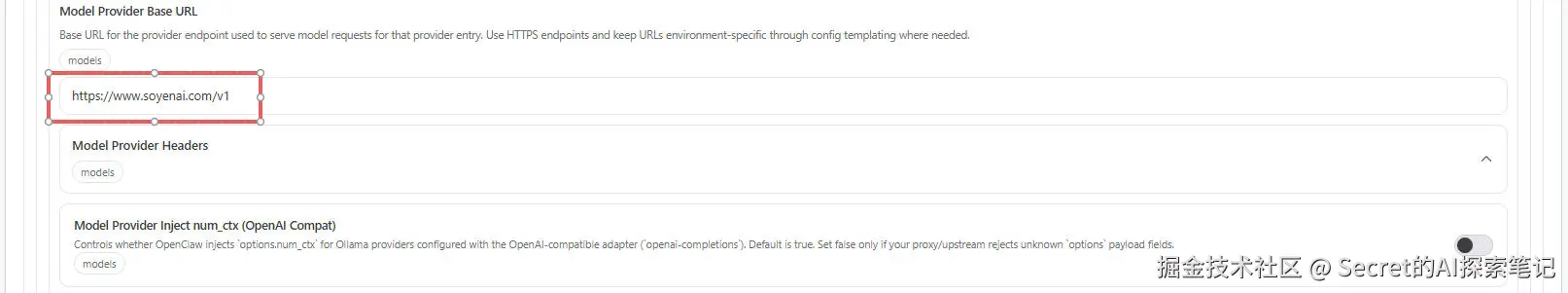 向下滚动到 Model Provider Base URL(模型提供商基础地址)区域